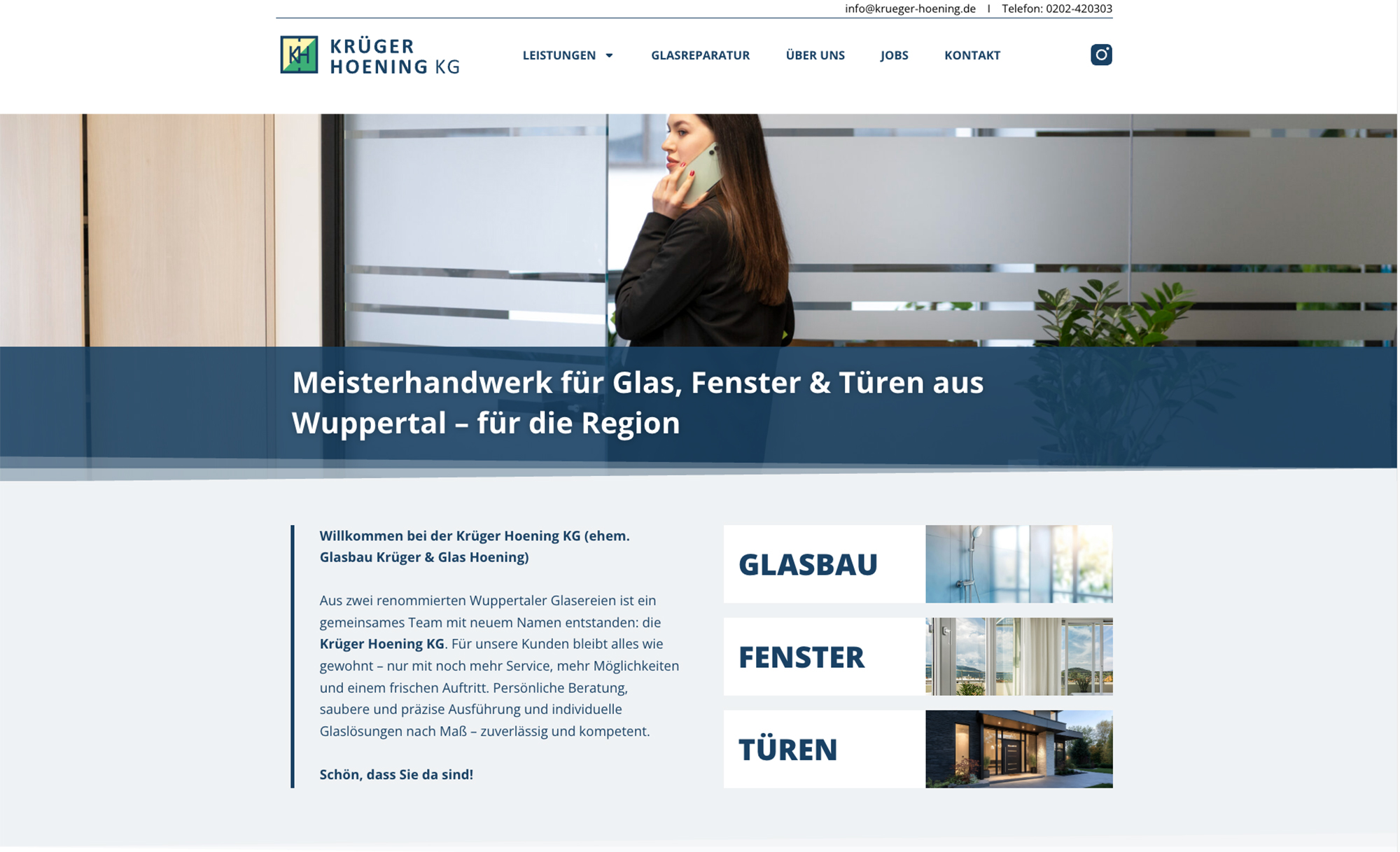 Glaserei Adelhöfer aus Mettmann ist jetzt Krüger Hoening KG | HIER GEHT ES ZUR HOMEPAGE VON GLAS Krüger Hoening KG